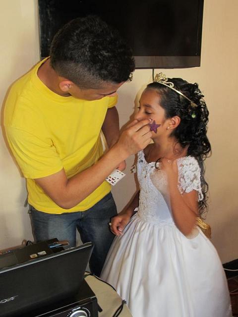 Actividad realizada al inicio de la fiesta, en esta ocasión Primera comunión, en las pintacaritas se realizan figuras al gusto de los niños, con esto los niños sientes que se encuentran en una ocasión especial y se preparan para seguir con las actividades programadas.